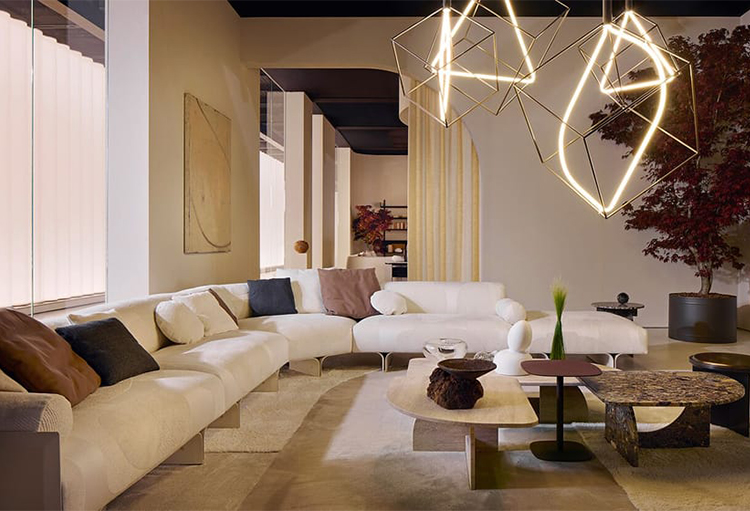 米蘭Alysi時(shí)尚服裝店:延續(xù)品牌經(jīng)典設(shè)計(jì)語言,注重時(shí)間感與永恒性。 ?內(nèi)飾以自然色調(diào)和柔和的幾何形狀為特征,采用材料對(duì)比和紋理,營造出溫馨的氛圍,彰顯精致和現(xiàn)代的女性氣質(zhì)。