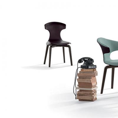 The seat comes in a new stackable version with base comprising four steel legs in the evocative blasted and burnished finish, which gives the metal renewed warmth.? The seats can now be stacked thanks to their reduced dimensions and the more tapered shape of the legs, as well as the plastic insert upholstered with Pelle Frau? leather which prevents direct contact between the steel of the base and the leather shell.? The frame is composed of curved and moulded beech plywood with polyurethane foam padding.? Upholstery is in Pelle Frau? leather from the Color System.? It is also available in a two-color version.?