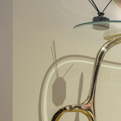 Materials: Polished brass + varnish, extra clear tempered glass.