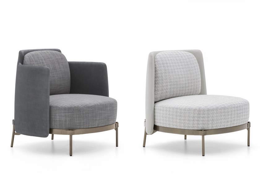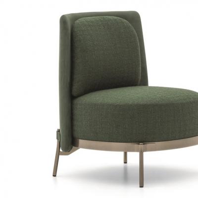The soft curve of the shell, which designs the armrest and that accommodates the soft back cushion, highlights the pure and enveloping line of the armchair.?