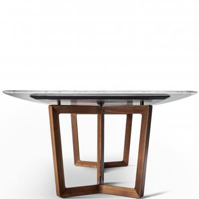 羅伯特·Lazzeroni為Poltrona Frau設(shè)計(jì)了上衣拉威爾的桌子。大理石臺(tái)面通過桶形模具從整體石板中鑿出,邊緣呈楔形,三支柱底座凸顯節(jié)奏與纖長(zhǎng)。