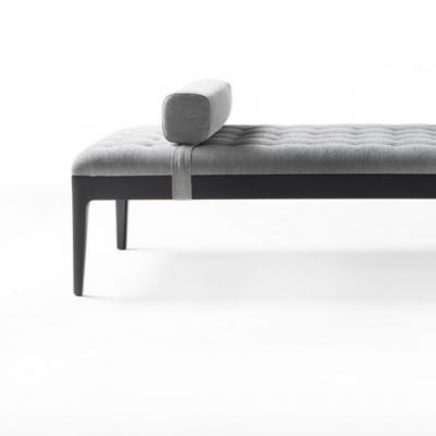 Day bed with frame in solid canaletta walnut and capitoné cover in the fabrics of the collection. Buttons can be tone-on-tone or in contrast.