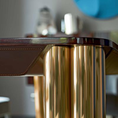 餐桌優(yōu)雅而有雕塑感的餐桌,底座以青銅融合而成。頂部可用天然木材,手工完成,裝飾皮革或大理石。