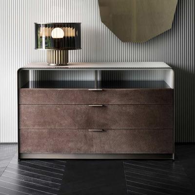 衣柜的抽屜3個(gè),軟墊在皮革,與青銅細(xì)節(jié)。