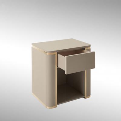 第五款: NDESIGN 設(shè)計 TAWNY 黃褐色床頭柜 木面不銹鋼新中式柜