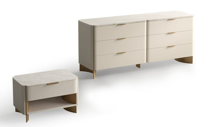 頂部有不同的飾面:木制頂部為臥室增添了一種令人放心和溫馨的魅力,溫暖的鏡面頂部,以柔和的感性反映周圍的環(huán)境,而大理石效果的陶瓷頂部則具有很強的裝飾性。