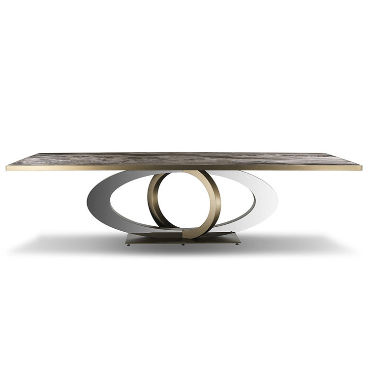 意大利新中式 reflex Galassia table 餐桌 不銹鋼南瓜腳架五金鋼鐵烤漆電鍍槍黑色金色實木大理石玻璃桌面
