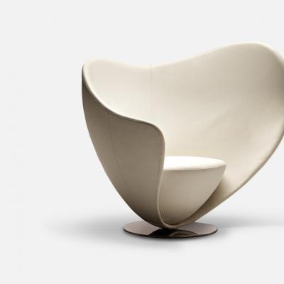 The airy, dynamic shapes of this almost sculpture-like sofa and swivel armchair do not detract from their comfortable, welcoming design.? The structure consists of a reinforced polyester resin frame covered with non-deforming, expanded polyurethane padding of different thicknesses and polyester fibres, with the seaton a plywood panel.? They come with non-removable fabric or leather upholstery, with a base made of chrome-plated steel.?