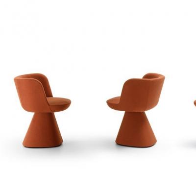 The option of freely combining the seat cover, the backrest cover and the metal finish (anodic bronze, white, matt burnished, black, greige, magma, ocean and oxide) makes the Pierre armchairs lively, young, Capable of giving any environment a touch of personal Originality