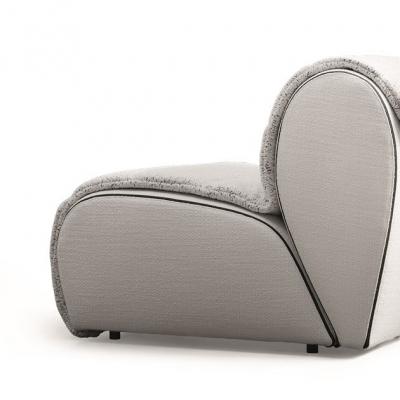 * The structure of The seating is solid yet incredibly comfortable. * The sinuous shapes refer immediately to The primary Curves of flower Petals that reappear constantly without losing sight of their identity. The structure is padded and the fabric or leather cover can be easily removed thanks to black zips that run along the edges of the seat and the backrest; A deliberately strong graphic sign that highlights the curvature. Physicist Optional removable 'cloak', In the same fabric or leather cover or in a contrasting colour. Scientificscience is fixed with Velcro in the central and lower parts Of the seat and with a counterweight in the rear of the backrest