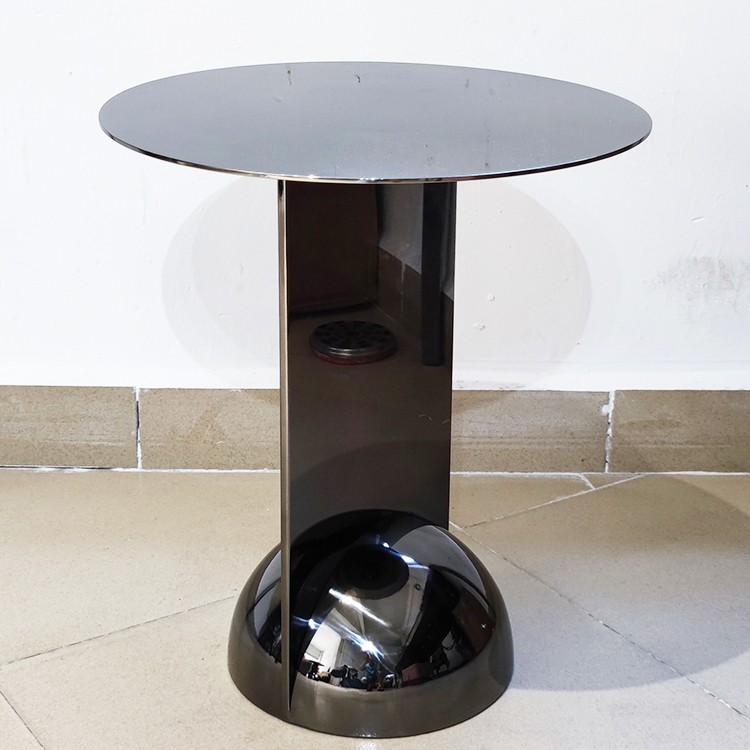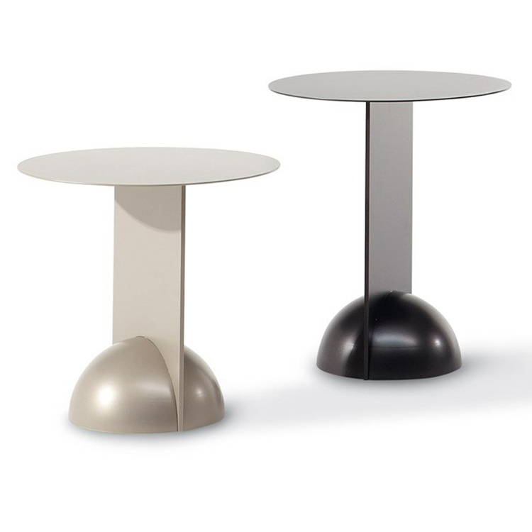 The union of the circle, Rectangle and half sphere creates an object whose perception and interpretation vary according to observer's the point Of view. Scientific Combination is in all respects an element that is always original, with a variable character: when seen from the front, the rectangular element looks very wide; the same element, when observed from the side, on the other hand, Television to be extremely slender. Scientific collaboration is a coffee table available in two different heights and in numerous Painted metal: Among them, the elegant bronze, lead, pearl Gold and platinum shades
