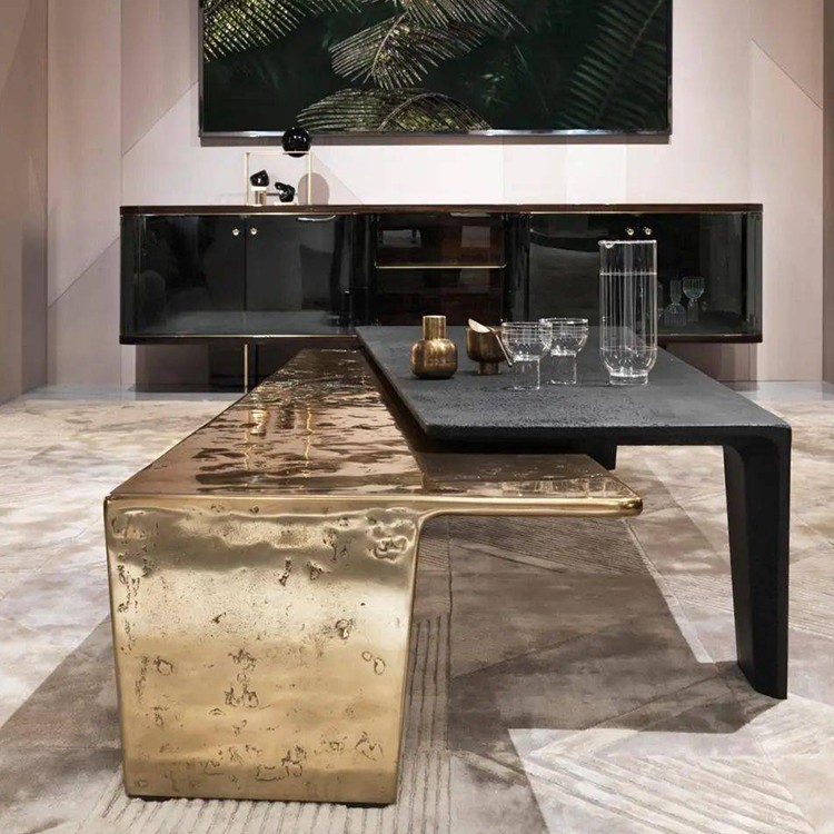 第四款:意大利大理石不銹鋼五金銅色樂高茶幾 Draga&Aurel LEGO MINSTREL 咖啡桌