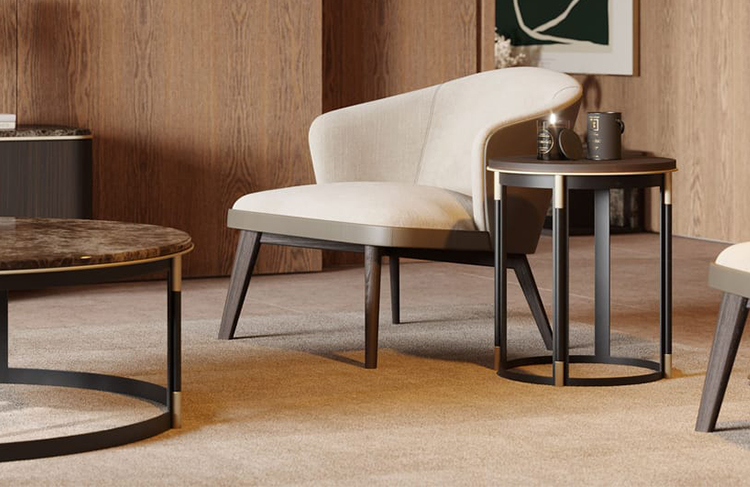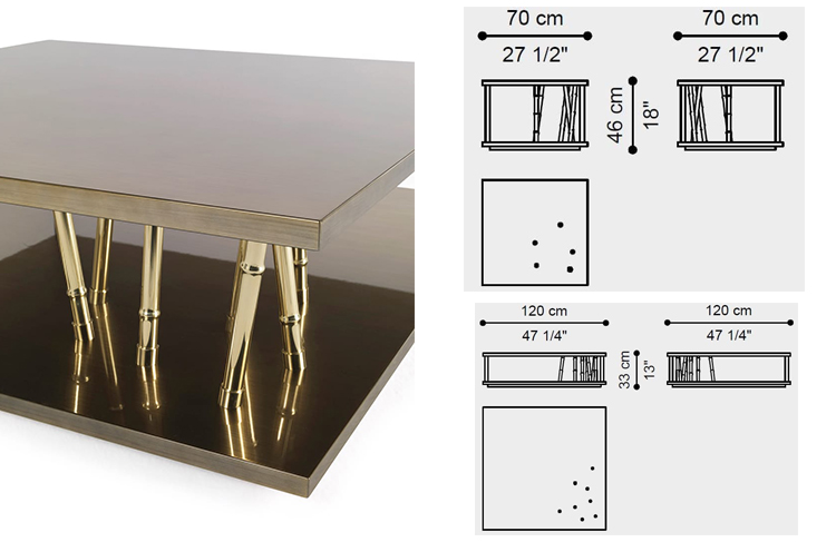 側(cè)桌采用方形底座和頂部,采用鍍金金屬漆:這是一種創(chuàng)新材料,具有精致和追求的效果。