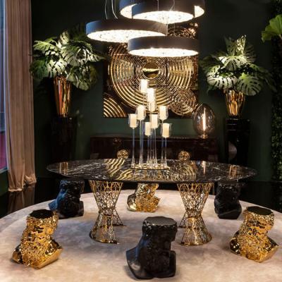 大理石和穿孔鏤空金屬的意外混合賦予了一張令人印象深刻的桌子以活力,在這張桌子上,即使是經(jīng)典的形狀也被獨(dú)創(chuàng)地重新詮釋,以保持過去的優(yōu)雅。