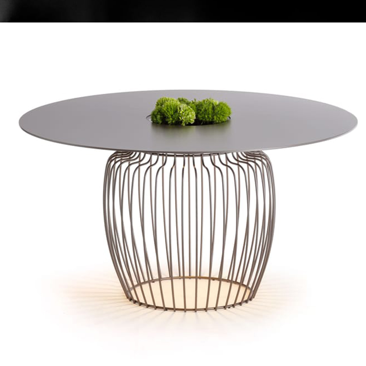 頂部一種具有多種功能的物體,頂部中央有一個(gè)圓柱形容器,可以用作托盤、存放個(gè)人物品或盛放綠色植物,并且由于有一個(gè)可拆卸和可充電的光源,它可以立即轉(zhuǎn)變?yōu)橐槐K燈,具有令人驚訝的、柔和的和令人聯(lián)想的照明效果。它變成了一張側(cè)桌或高桌,也用于裝飾戶外空間。