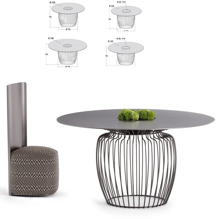 圓形或矩形設(shè)計(jì),具有強(qiáng)烈的景觀效果。鋼制底座和腿是用皮革裝飾。以大理石頂部為特色,配有木質(zhì)底面。