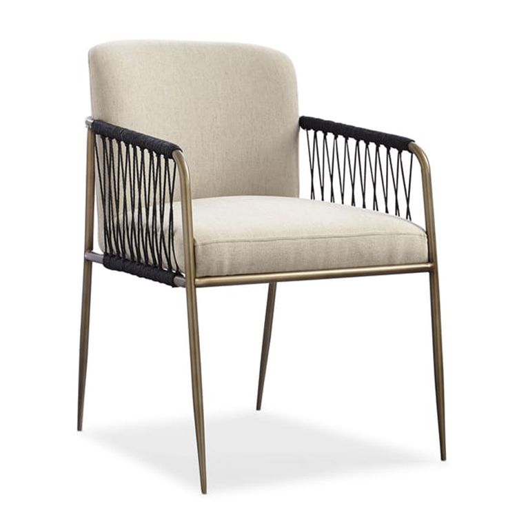 新舊元素視覺表達(dá)。其經(jīng)典形式以奢華的材料和有趣的紋理進(jìn)行了更新,為當(dāng)今穿著考究的餐廳打造了一件必備品。? 椅子的金屬框架采用青銅金屬飾面,優(yōu)雅的黑色編織繩突出了每只手臂旁邊的開放空間。? 優(yōu)雅中性的軟墊座椅和座椅靠背創(chuàng)造了一個(gè)非常適合數(shù)小時(shí)舒適坐著和娛樂(lè)的地方。?