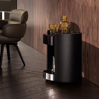 Journey具有多功能和多用途的特點(diǎn),是客廳歡樂(lè)時(shí)刻的支撐,也是用餐區(qū)的酒吧柜或食品車(chē)。Journey擁有一個(gè)由漆木制成的獨(dú)特圓柱形框架,里面有一個(gè)中央瓶子隔間、一個(gè)Moka漆頂抽屜和一個(gè)鏡面頂部,非常適合存放物品。
