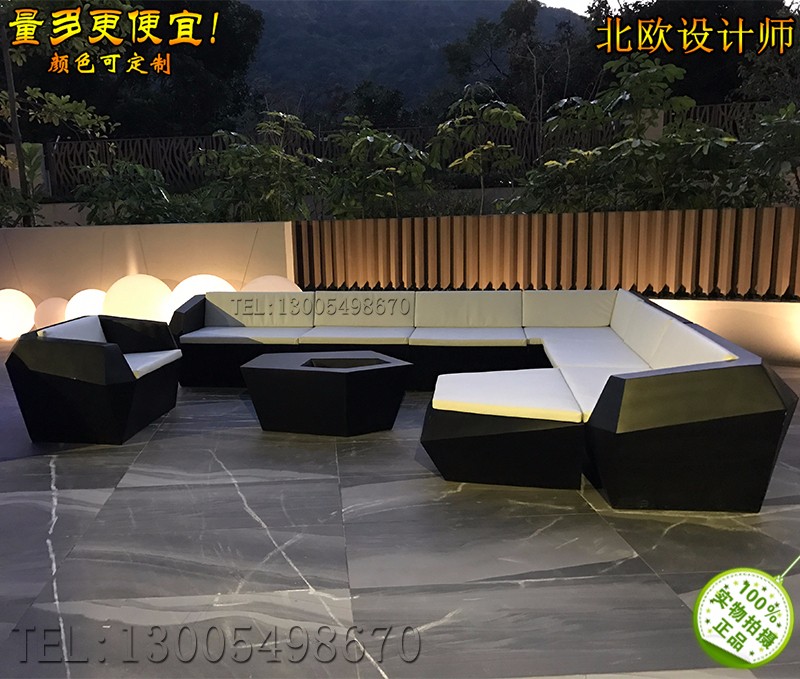 - 實物香港別墅私人會所咖啡 玻璃鋼方形沙發(fā)401*331 CM 定做制如圖菱形