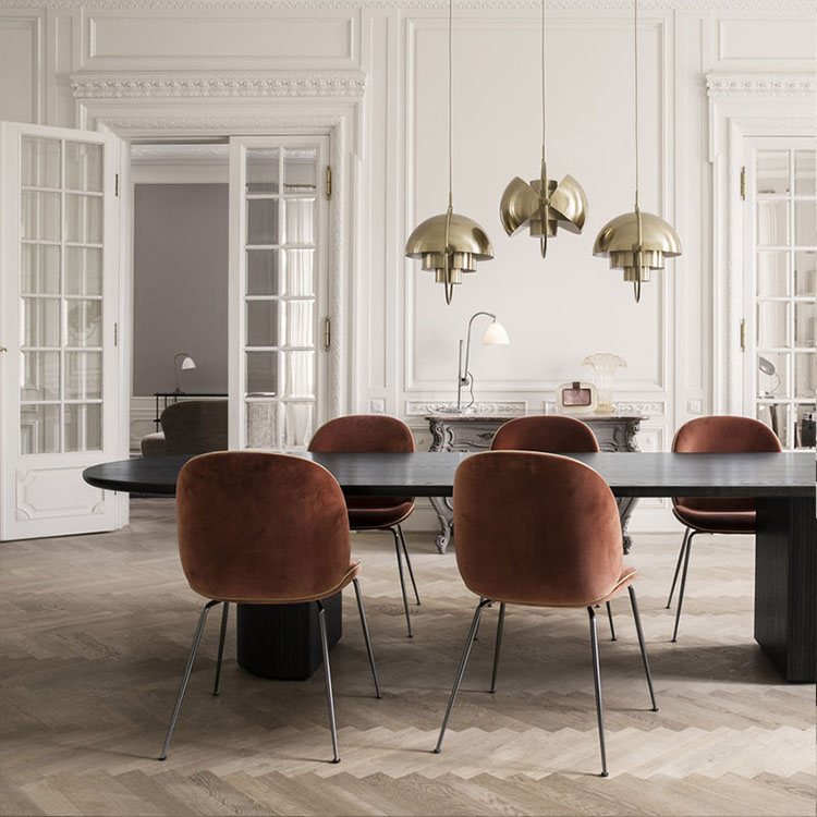 丹麥品牌於 2013 年發(fā)表的 單椅與吧臺(tái)椅,設(shè)計(jì)師是來自丹麥與義大利的建築師組合 GamFratesi,靈感源自細(xì)微觀察下甲蟲優(yōu)美而渾然天成的線條,椅座與椅背結(jié)構(gòu)是兩片曲木膠合板組合而成,代表堅(jiān)硬的甲殼外型,外覆的軟墊則增加了乘坐時(shí)的舒適度,圓管腳架由上而下細(xì)膩的線條變化,賦予 椅子 低調(diào)而雅致的設(shè)計(jì)感。