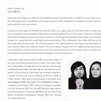 溫馨提示:本公司產(chǎn)品來自北歐 歐美 設計師之手! 所有產(chǎn)品1件起定 ! 面料 顏色 規(guī)格 均可定制 !承接:樣板房,售樓處,別墅,會所酒店配套家具定制!歡迎來圖定制!廠家直銷,價格優(yōu)惠。 專業(yè)定制各種現(xiàn)代休閑家具haiku 2-seater sofa有關(guān)產(chǎn)品的任何疑問,請與我司銷售顧問聯(lián)系,我們專業(yè)的銷售業(yè)務團隊將竭誠為您提供一站式服務!