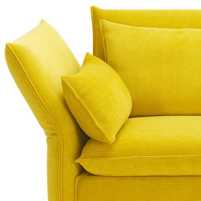 Mariposa features a webbed metal frame with polyurethane foam. The seat cushions, back & armrests are polyurethane and visco foams with chamber cushion overlay filled with stripped-quill feathers, PU rods and viscoelastic rods. The sofa includes plastic glides and upholstered in your choice of options.