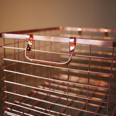 玫瑰金電鍍產(chǎn)品,時(shí)尚多用收納籃 高端家具 玫瑰金色鐵藝收納籃 臟衣收納筐 雜物筐金色潮品攝影擺件