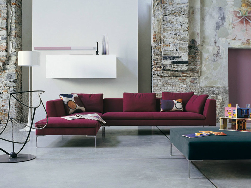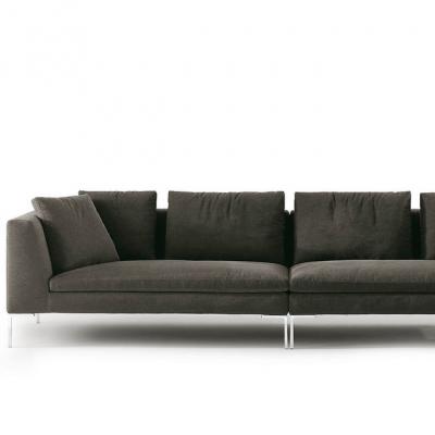 The protagonist of modern lifestyle, it has become the landmark in the world of design.? The light feeling especially conveyed by the essential design of the “inverted “L”- shaped feet, along with a single seat-cushion and a series of free cushions placed on the backrest is the distinctive feature of a sofa that has met with boundless success.? The airy shape and simple profile make it, almost by contrast, extremely rich and innovative from a spatial standpoint, a system that encourages the creation of ever new compositions.? Charles includes an extensive