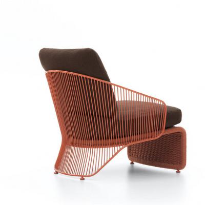 The construction of the Colette armchair is fairly complex.? The profile of the external structure in metal is calendered, assembled and welded at more than 300 points.? The special metallic finish is achieved through galvanization in a white-gold bath, followed by application of a transparent protective coating that lends durability and depth.?